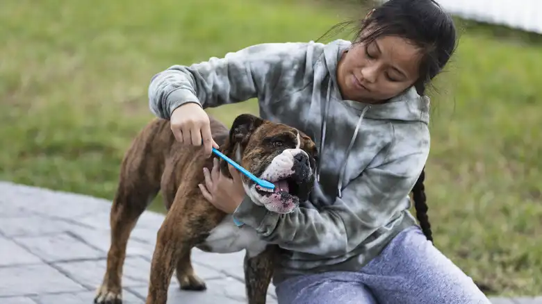 Natural ways to support a dog's teeth include probiotics like PetLab Co. Probiotics for Dogs, which also promotes proper gut health, and bone broth, like Brutus Bone Broth for Dogs, which also supports joints, both of which can help address other jaw-quivering causes, such as GI upset or arthritis, too. Adequate cleaning and support of a dog's teeth will help address problems before they happen. Importantly, regular at-home dental care will allow owners to look for potential problems before other signs of dental discomfort caused by inflammation or disease appear.