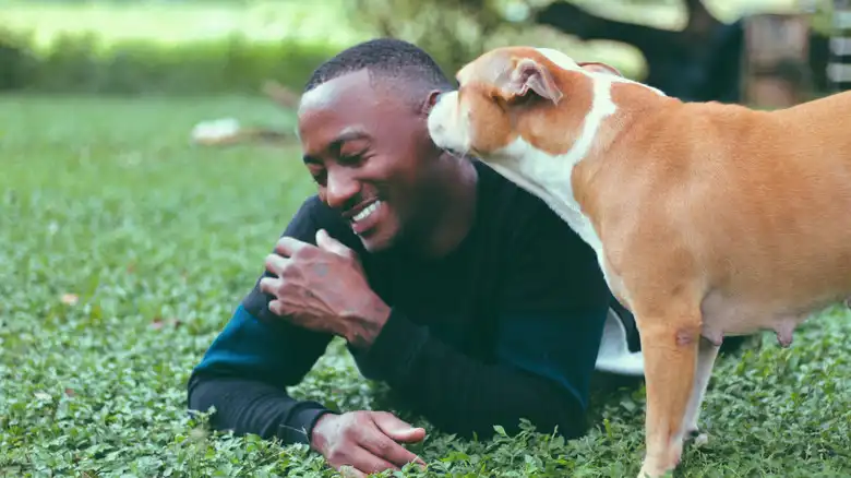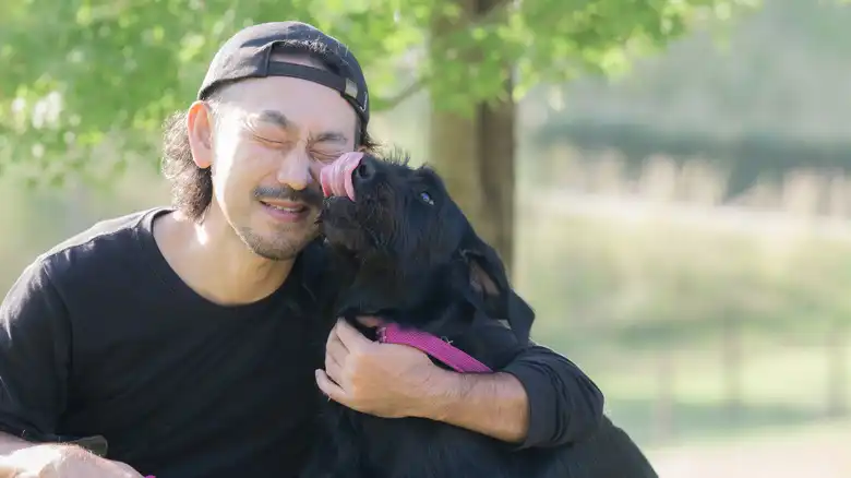 Pet parents posting on r/Dogs describe how much their dogs love to lick their faces and hands. One shared that "One of mine will only dole out a lick if she's especially happy or excited." Some say that their eager pups would spend all day licking them if it were possible. Your dog only needs to exhibit a mild interest for it to make sense for you to consider licking as a sign of happiness. There are a couple of reasons why a canine might lick a human, but happiness is the biggest. Dogs tend to amplify their good feelings by sharing them with others. When your dog licks you, you're sharing a special moment.