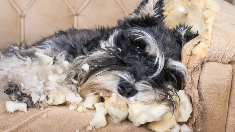 Separation anxiety ranges from mild to severe and can manifest in a number of ways. Your dog might urinate or defecate on your carpet, despite being housebroken. Pacing, barking, and howling are also common behaviors associated with this behavioral issue. Other ways that dogs express their separation anxiety include chewing on random objects or surfaces, such as shoes, walls, or doors, or by attempting to escape via digging.