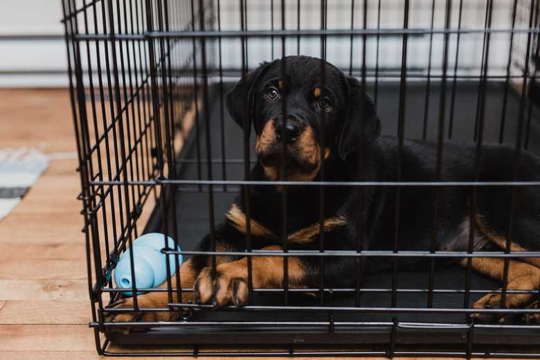 ByAndrea Lott HaneyUpdated Mar 23, 2021Crate training a dog prevents damage to the home from chewing while the owner is away. Dogs have a natural instinct to find a sleeping den in the wild and to a properly trained dog, a crate becomes not a cage, but a den. Since dogs instinctively avoid eliminating in their dens, it helps house train the puppy. Leaving the dog out of the crate at night is an option, but you may wake up to an accident. For best results, begin crate training as soon as possible after the puppy's weaning, but even a 5-month-old puppy can benefit from crate training.