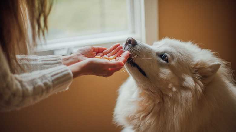 As long as the medication can be taken with food, Dr. Barrett suggests that you have a treat at the ready, which may encourage them to swallow what's in their mouth. You don't want to tilt their head back to get them to swallow, as that can cause choking.